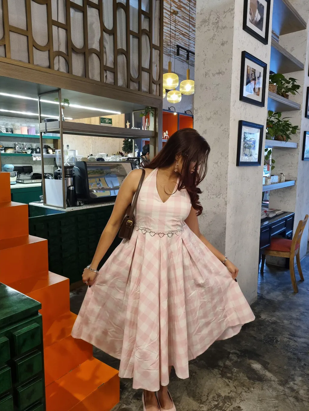 Pink Gingham Halter Dress. Cute summer dress for women with a checkered pink gingham print and a fun halter neck. Great for brunch or a picnic date!