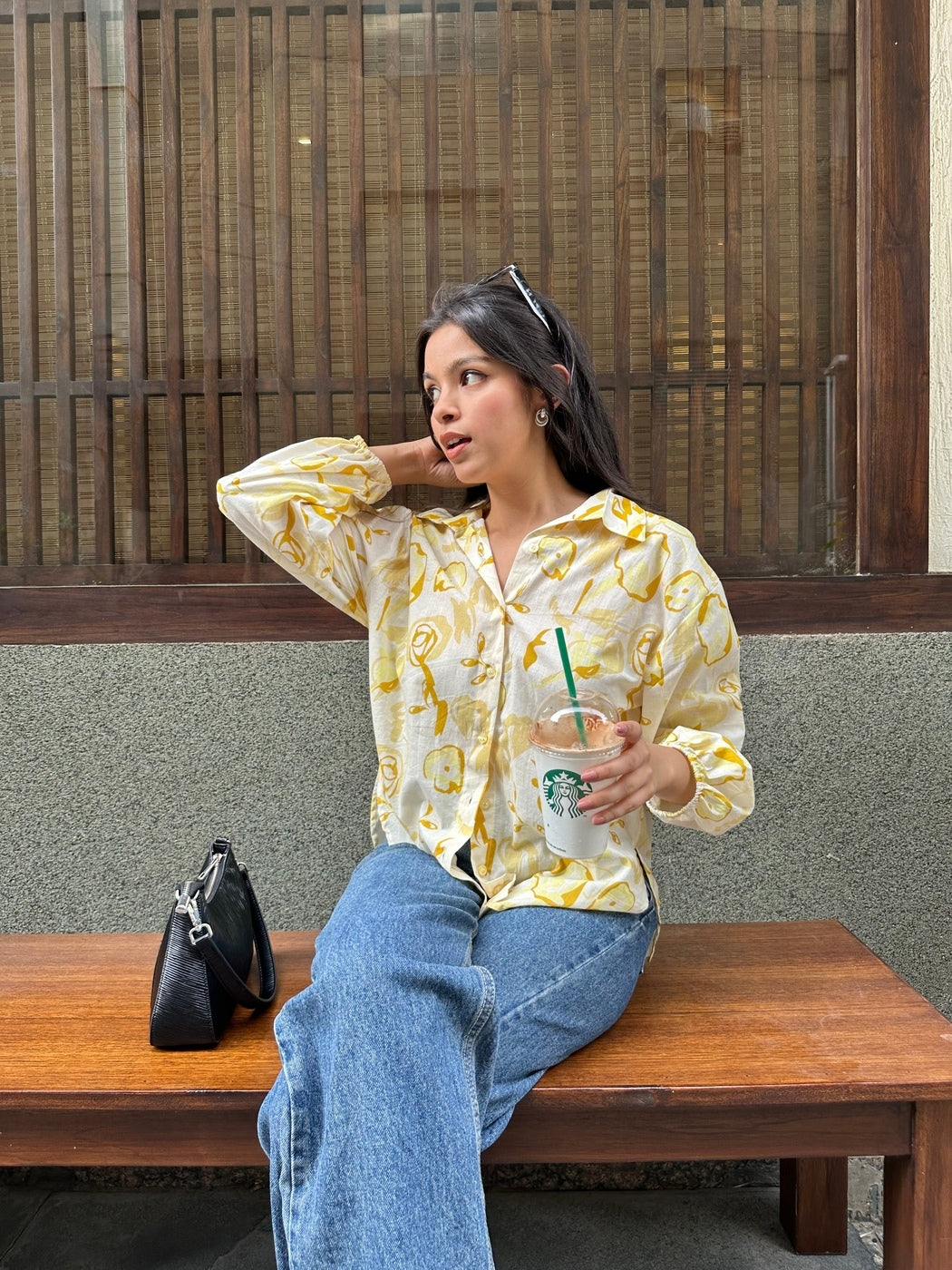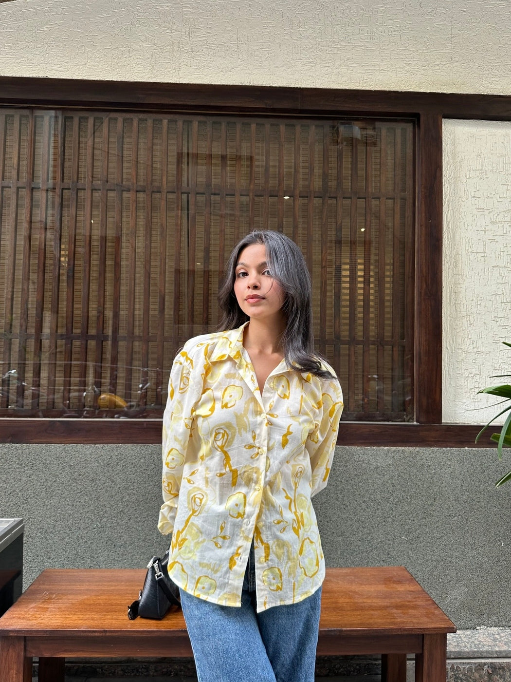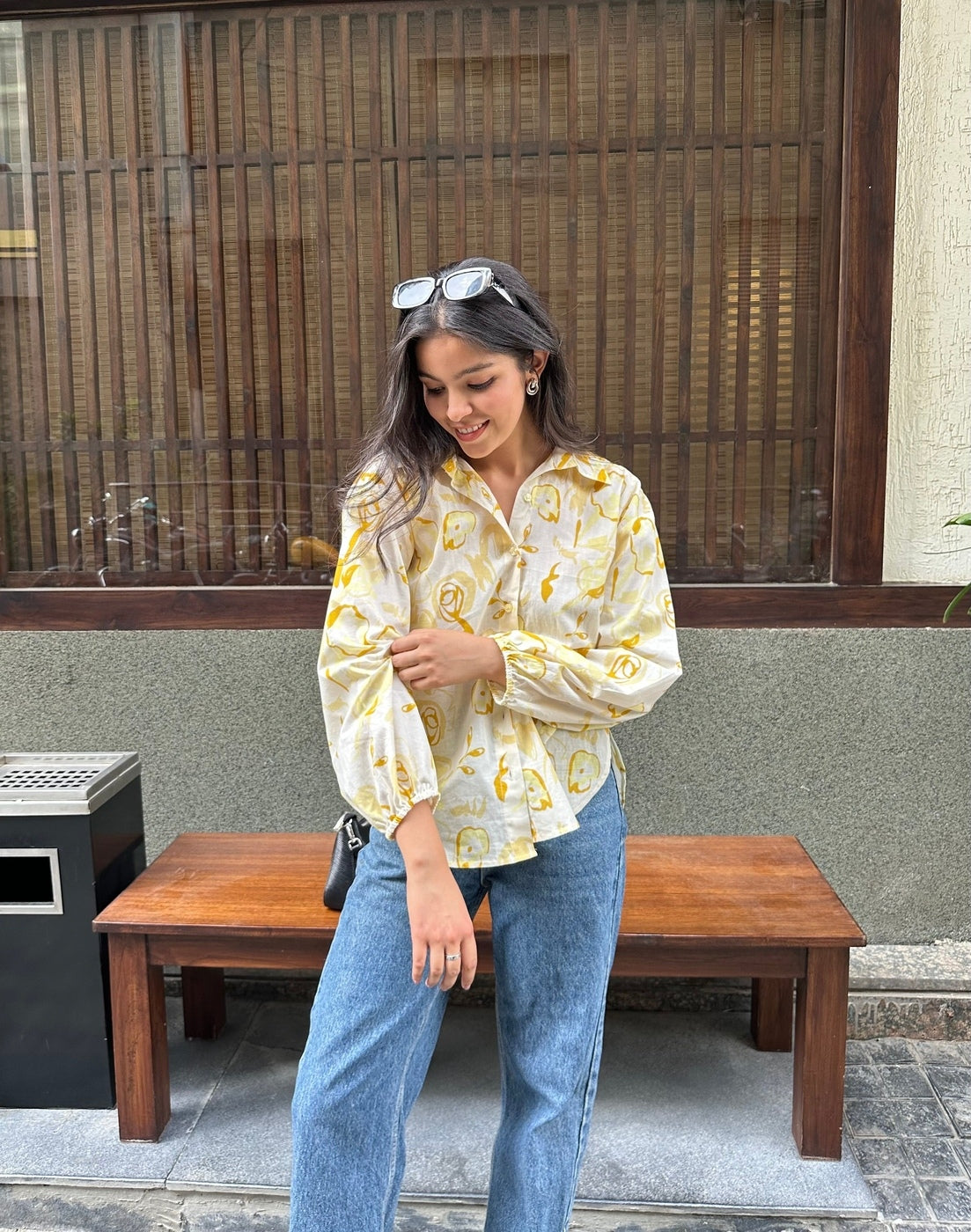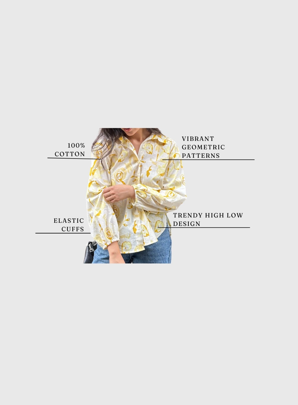Brighten your day with our Butter Yellow oversized shirt. This cotton shirt, featuring a cheerful floral print, is a must-have for your summer essentials. The balloon sleeves with elastic cuffs offer a relaxed, comfortable fit, perfect for a stylish casual shirt. A delightful addition to any collection of shirts for women.