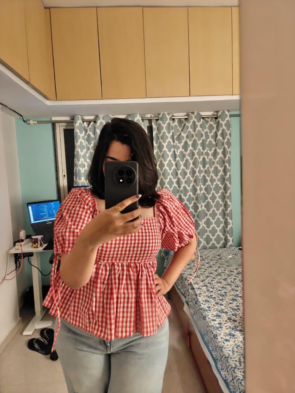 Strawberry Gingham Top - Summer Chic! Featuring a classic checkered print and flattering peplum waist. Perfect for brunch or picnic. Shop this summer casual essential in vibrant red gingham (plaid).