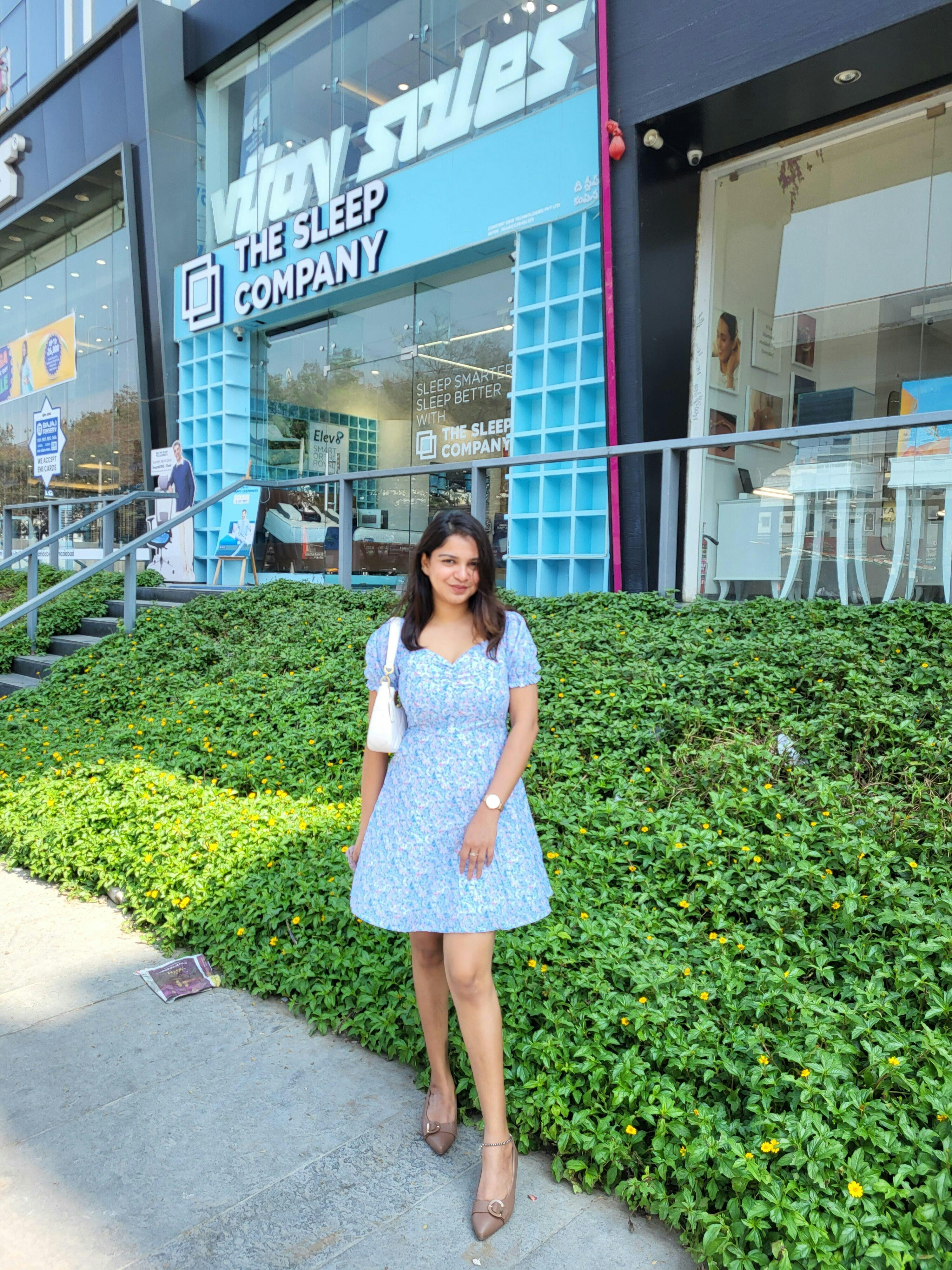 Embrace your feminine side with this gorgeous Daffodil dress in Blue and Yellow colour. It has sweetheart neckline with puffed short sleeves. The floral print and the cut out back design is to die for this summer.