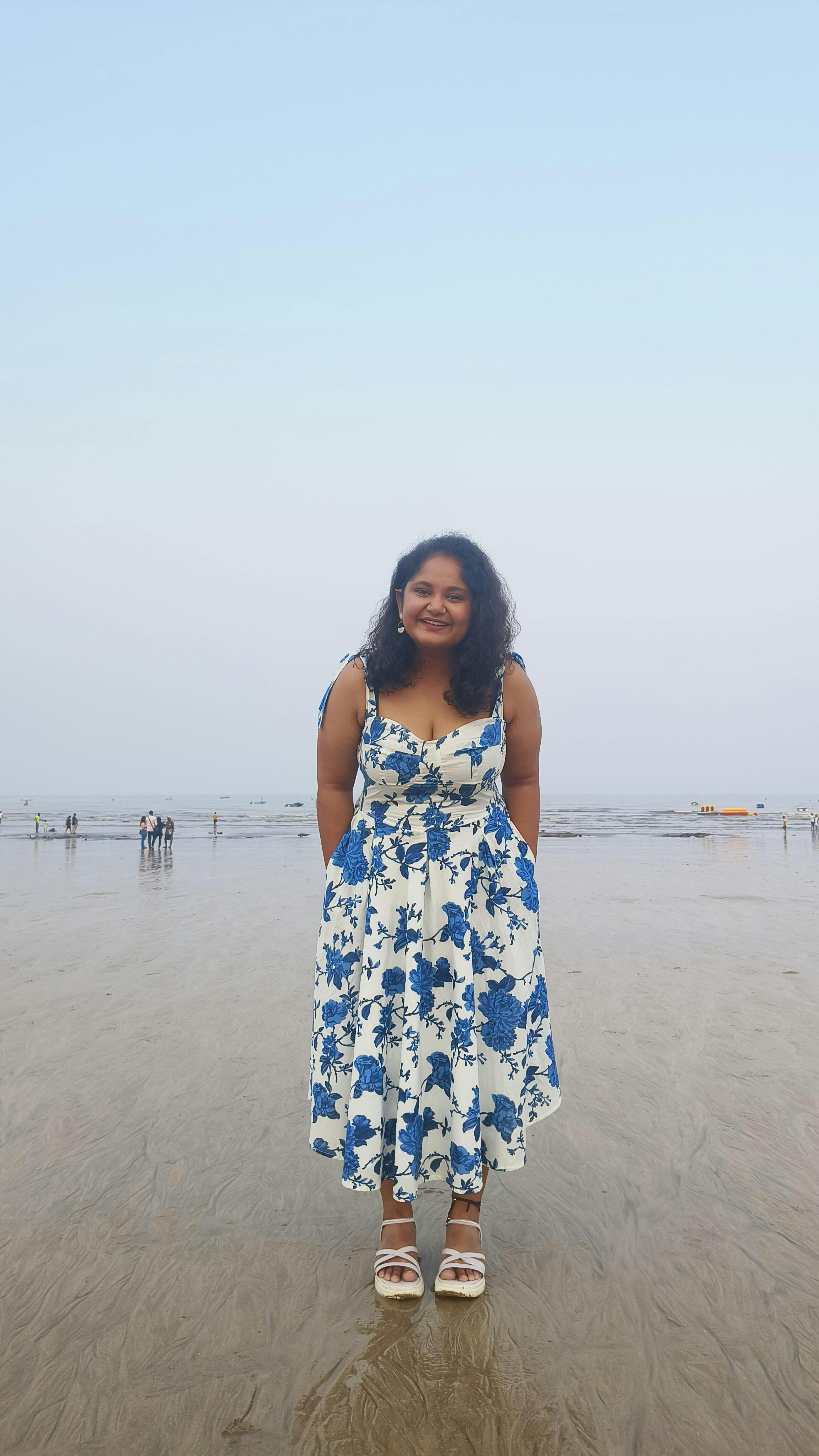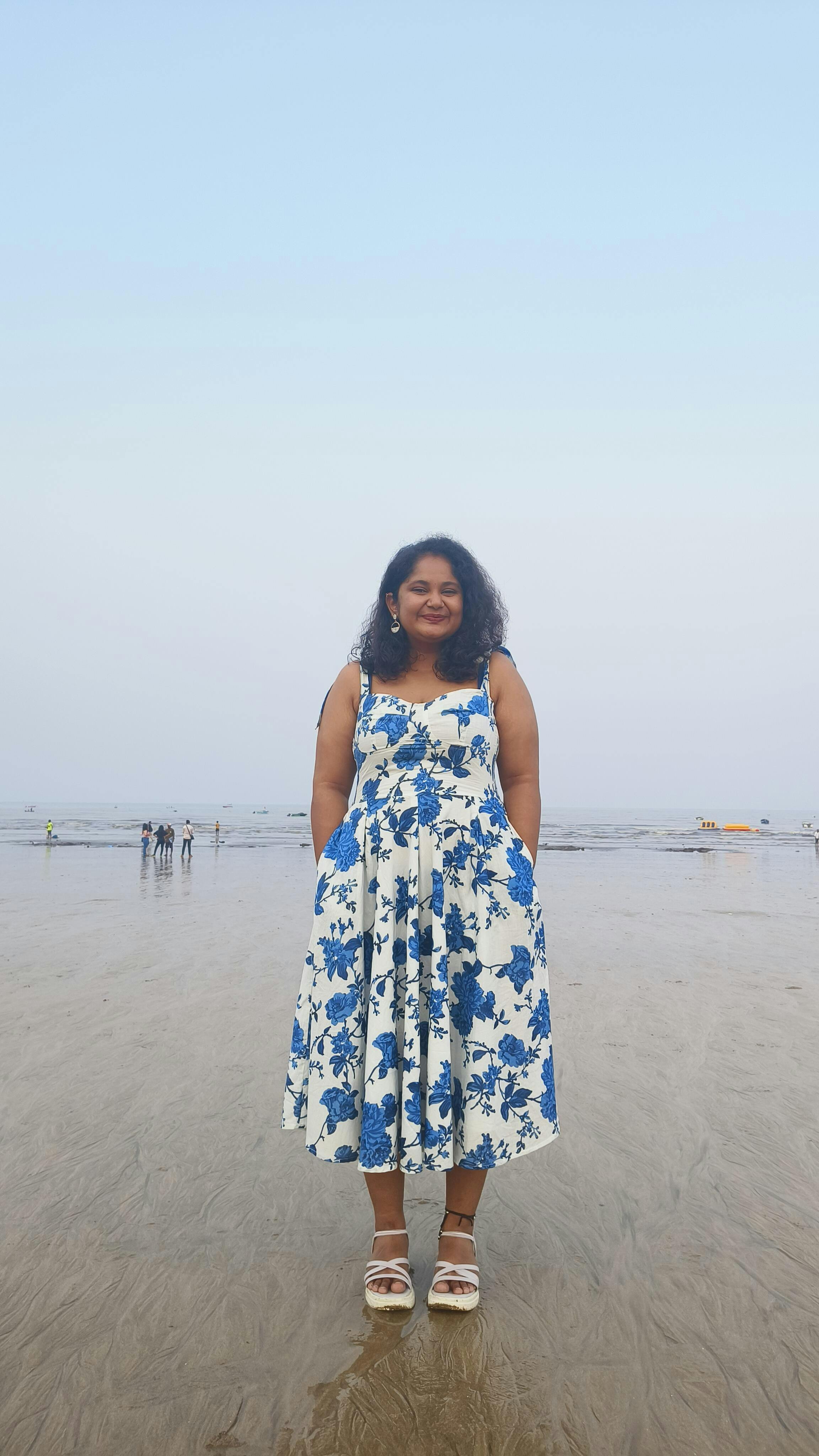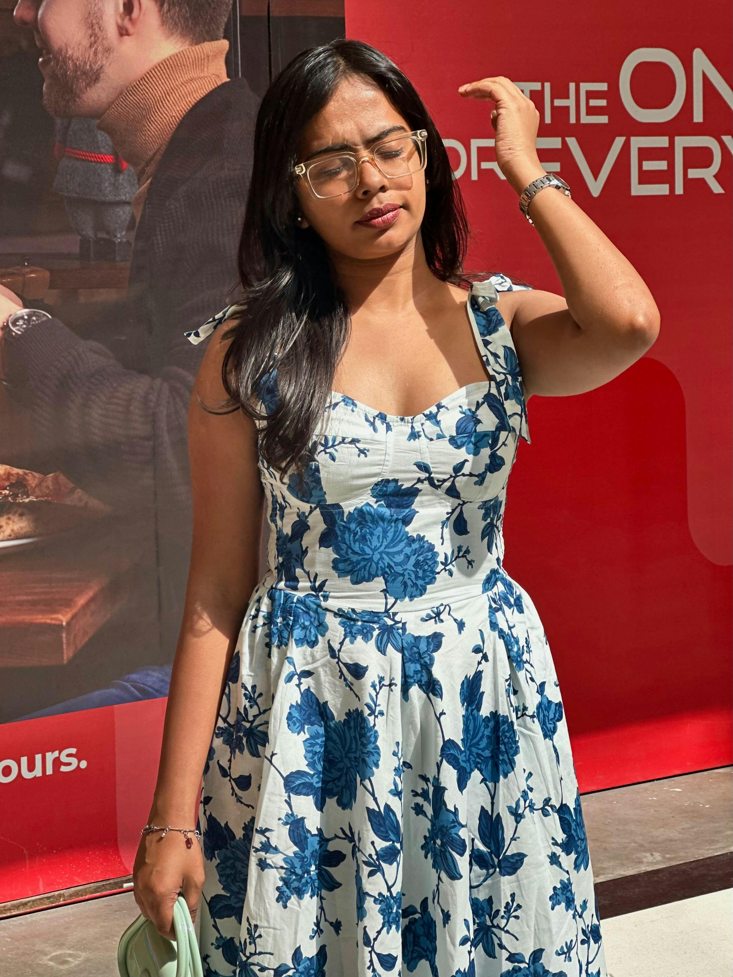 The Florence Tie Up Dress is a versatile addition to your summer wardrobe. This cute floral dress for summer features a Blue floral print, tie knot straps, and a comfortable flowy midi dress silhouette. It's perfect for a picnic day outfit or any casual occasion.