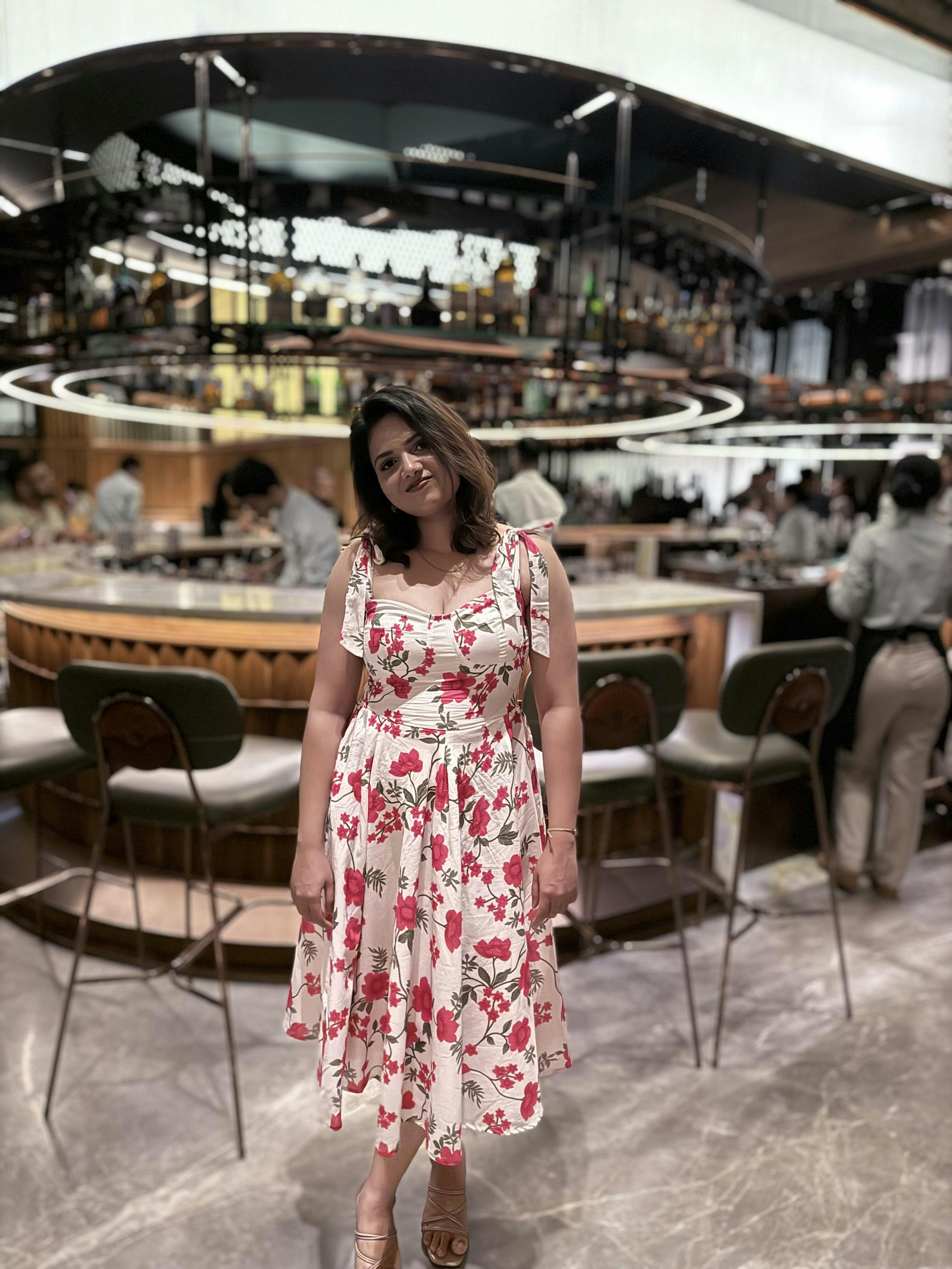 The Florence Tie Up Dress is a versatile addition to your summer wardrobe. This cute floral dress for summer features a Pink floral print, tie knot straps, and a comfortable flowy midi dress silhouette. It's perfect for a picnic day outfit or any casual occasion.