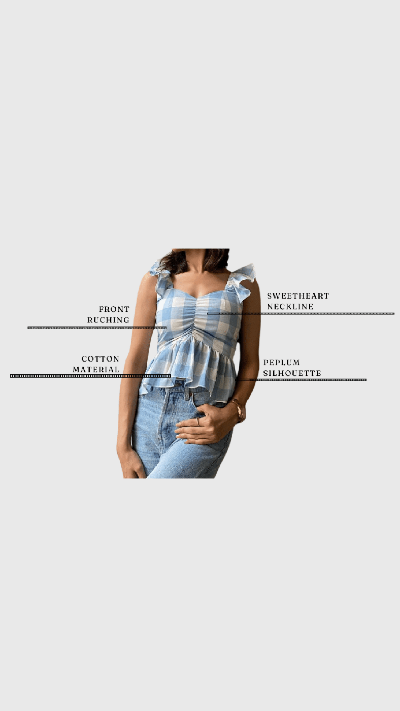 This summer top is a versatile addition to your warm-weather collection. The Gingham top features a classic check design in an ice blue colour, and its peplum fit and frill sleeves create a flattering fit and flare look.