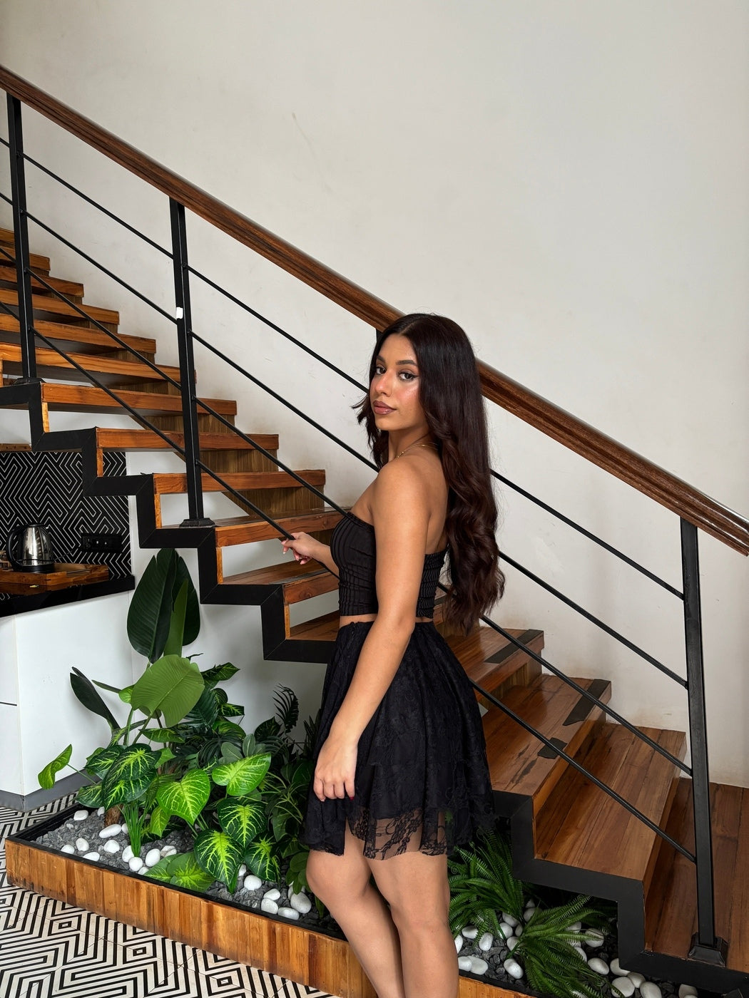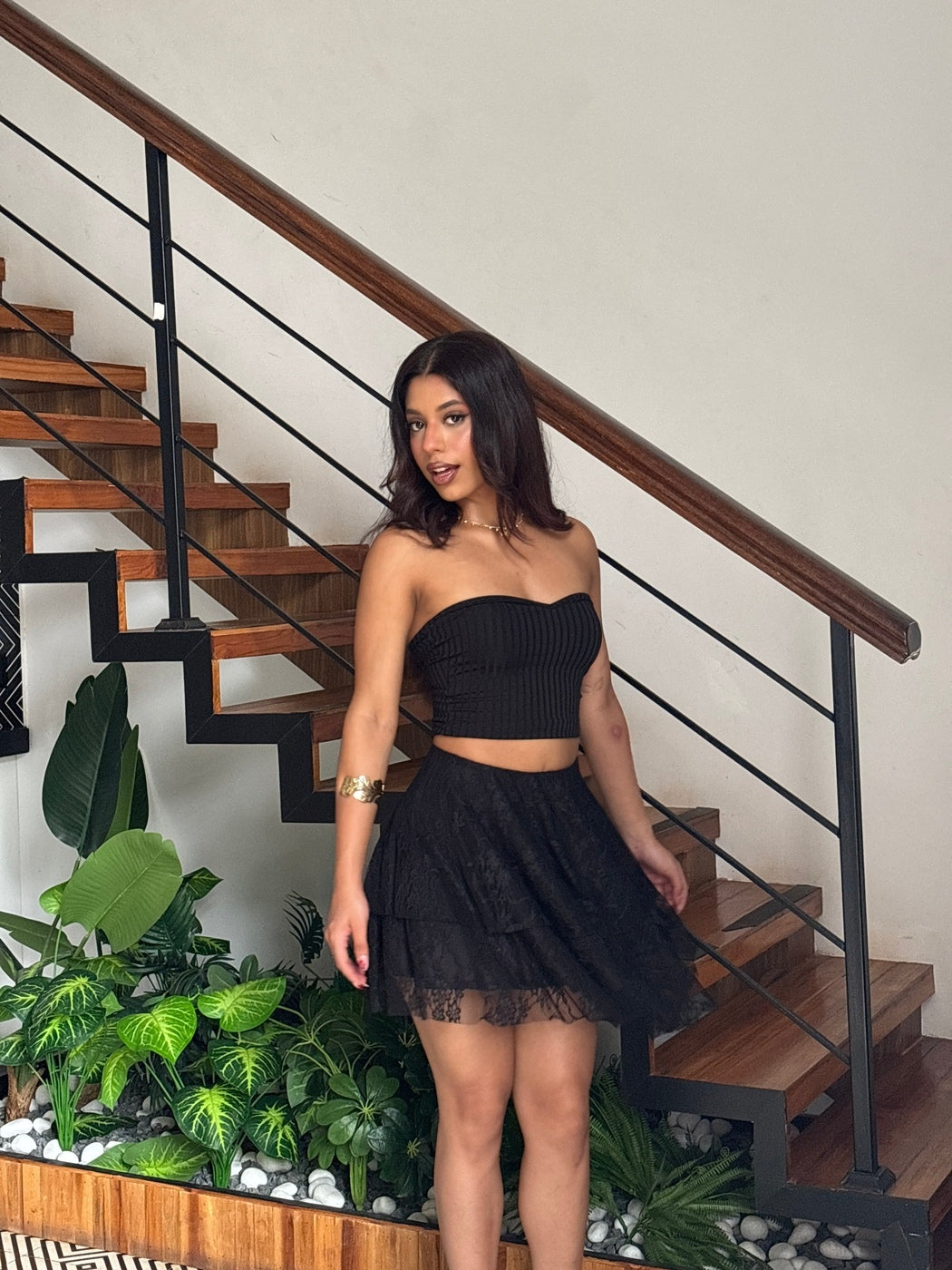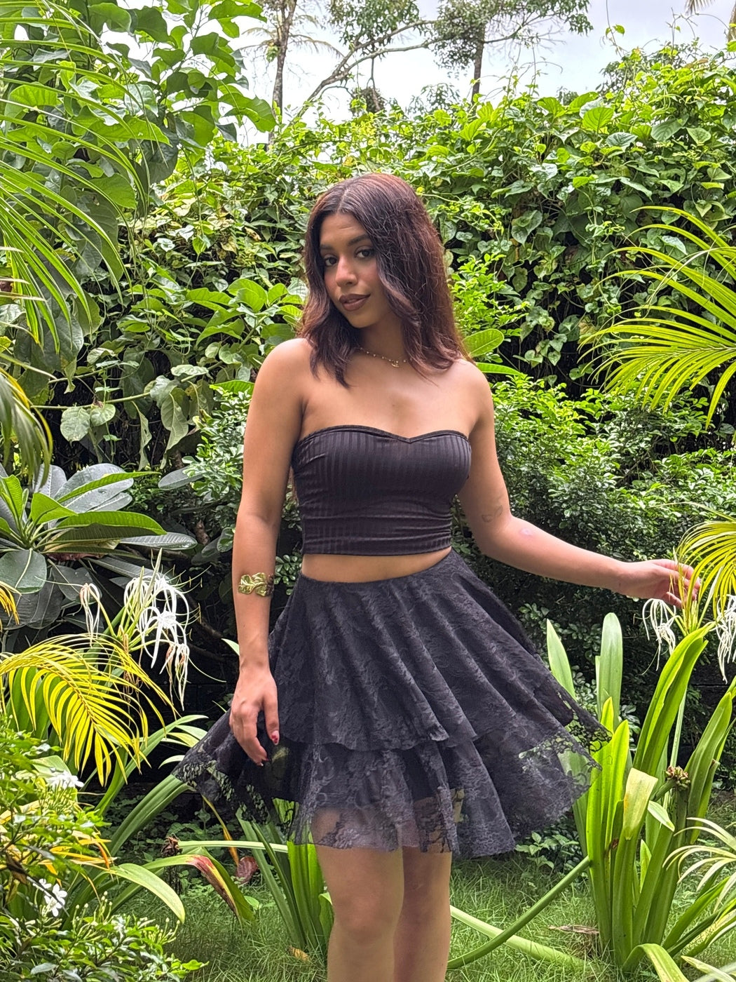 Sheer black lace, flouncy ruffles, and all the movement- this skirt was made for a good time. Whether you dress it up or down, it always brings the drama.