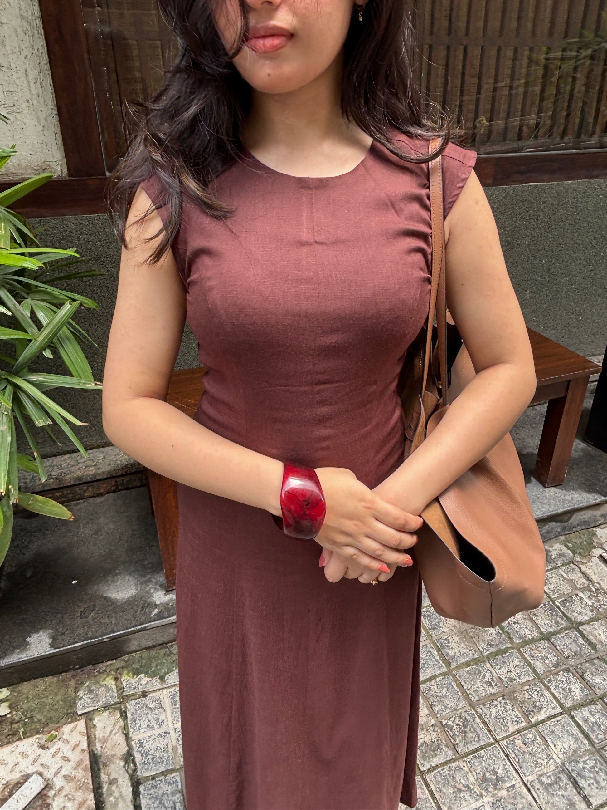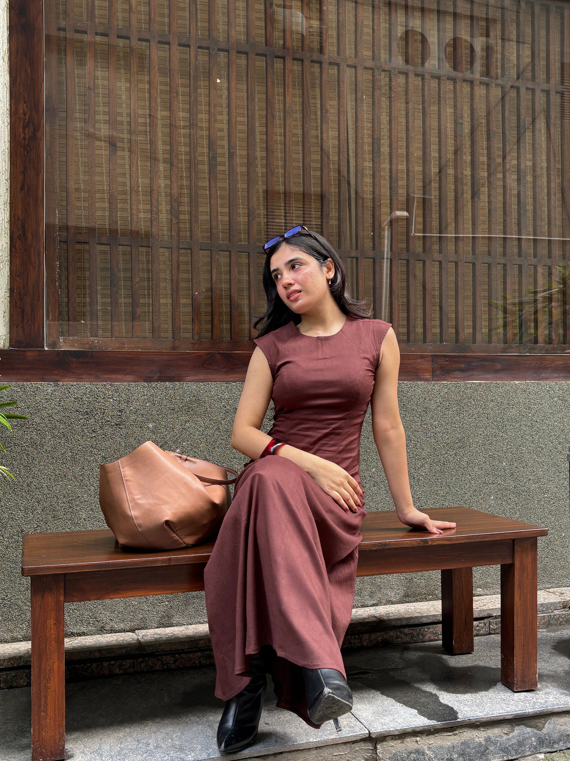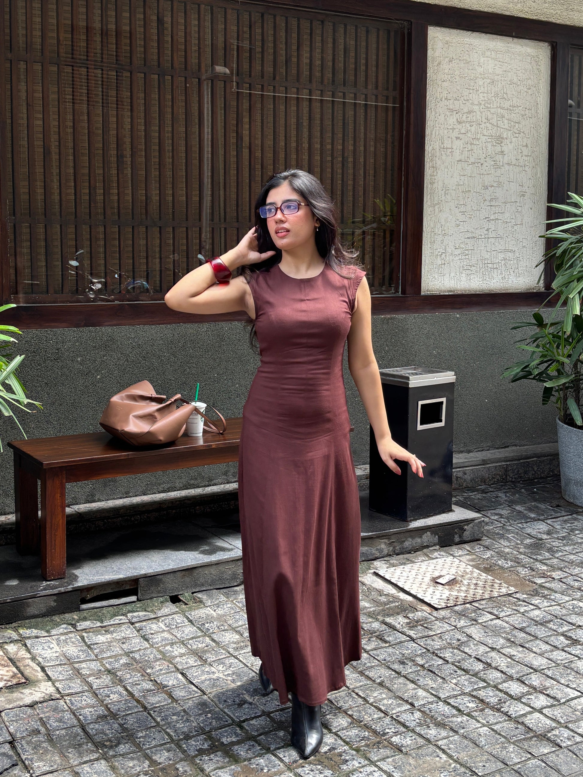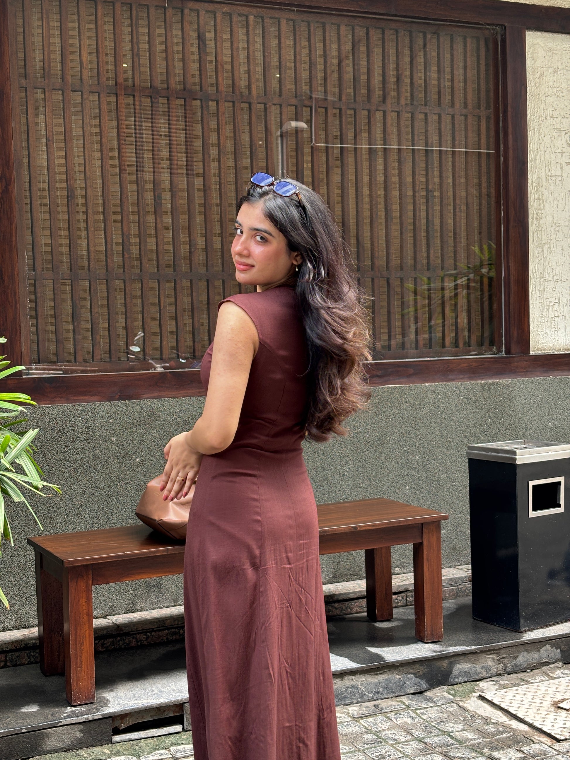 With its rich mocha tone and flattering silhouette, this dress is a seasonal must-have for autumn style.