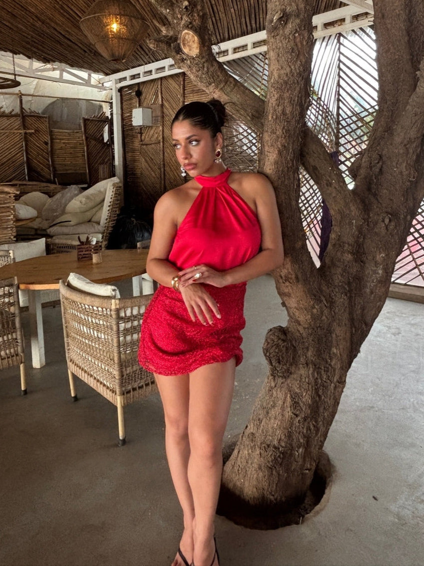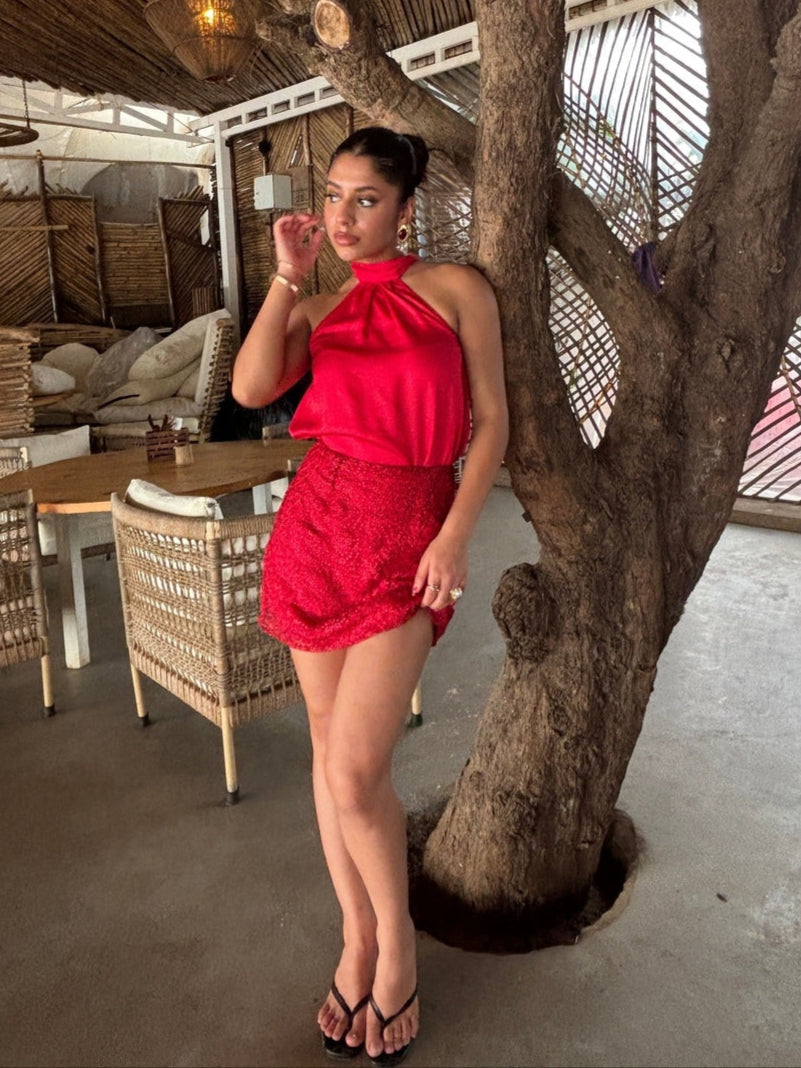 A fiery red mini with delicate embroidery that adds texture without the fuss. Style it with the Reef top or mix it with a white shirt for a fresh twist.