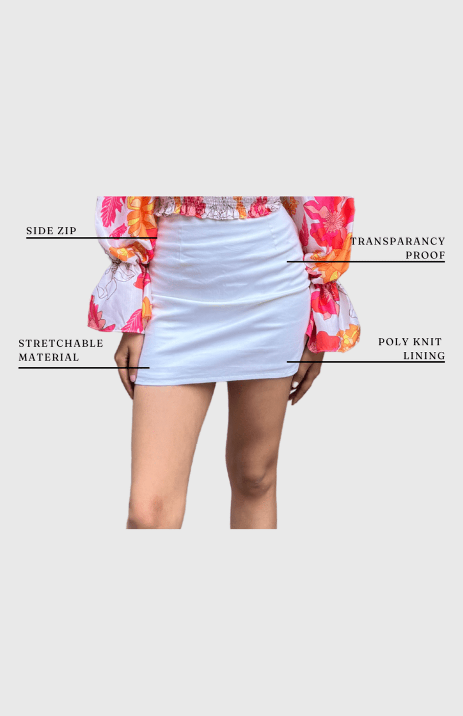 Our solid white skirt is a must-have for your summer wardrobe. This white mini skirt is perfect for warm days and a staple among summer skirts.